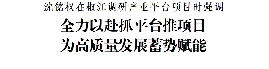 调研中,沈铭权强调,各地要以打造高能级产业平台为主抓手,坚持强链延链补链,加强重大项目招引和建设,加快改造提升传统产业、培育壮大新兴产业、前瞻布局未来产业,推动制造业高质量发展。各地各部门要始终坚持项目为王,用心用情做好服务保障工作,着力破解制约项目建设的瓶颈问题,推进重大项目早开工、早建成、早投产、早达效。